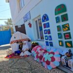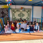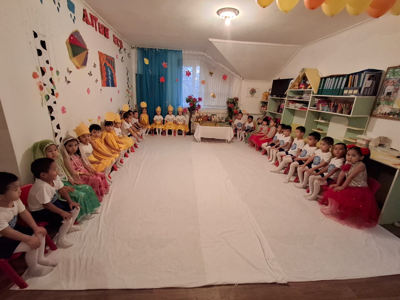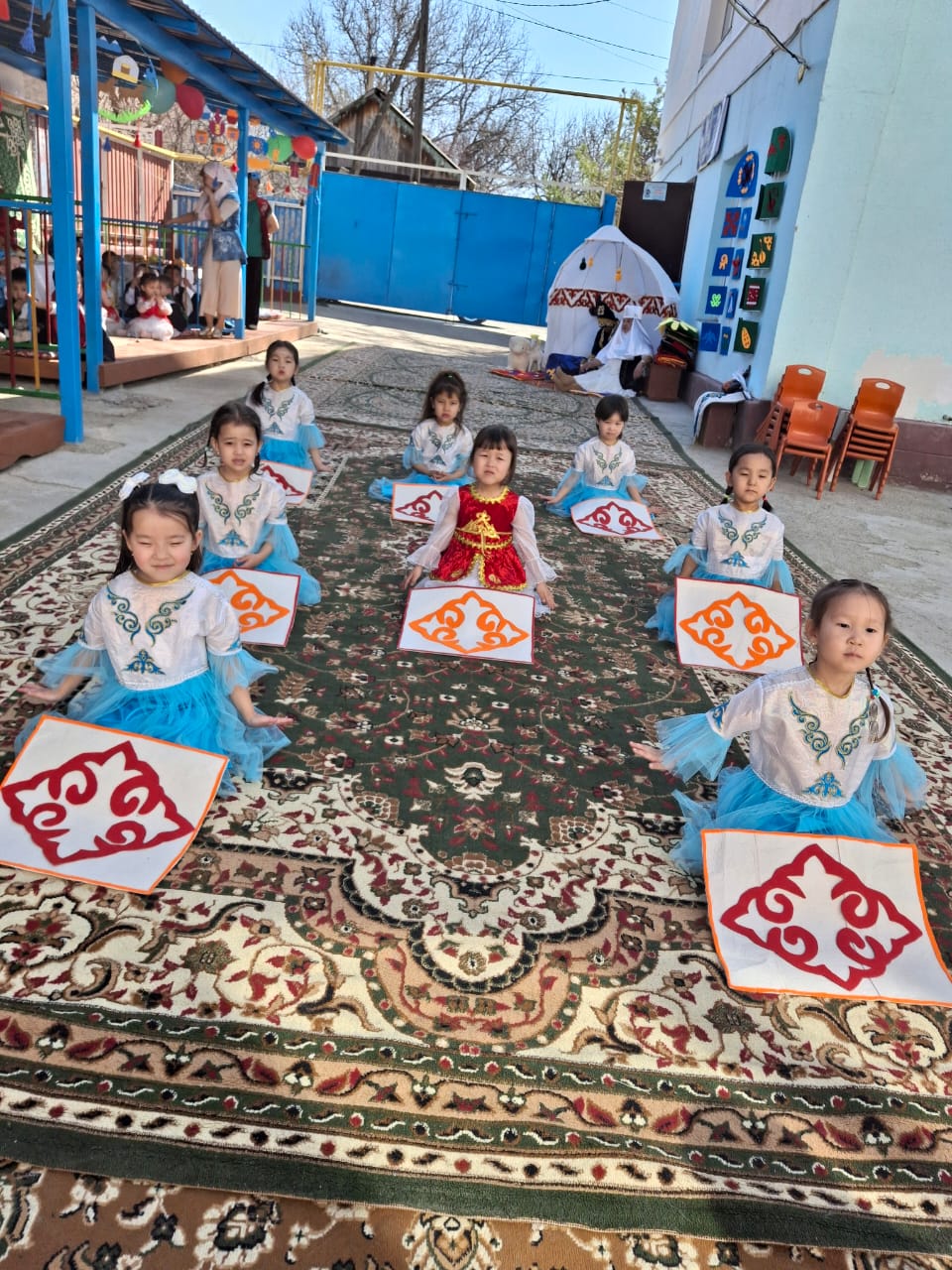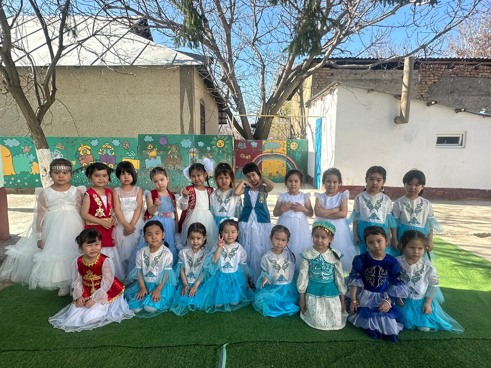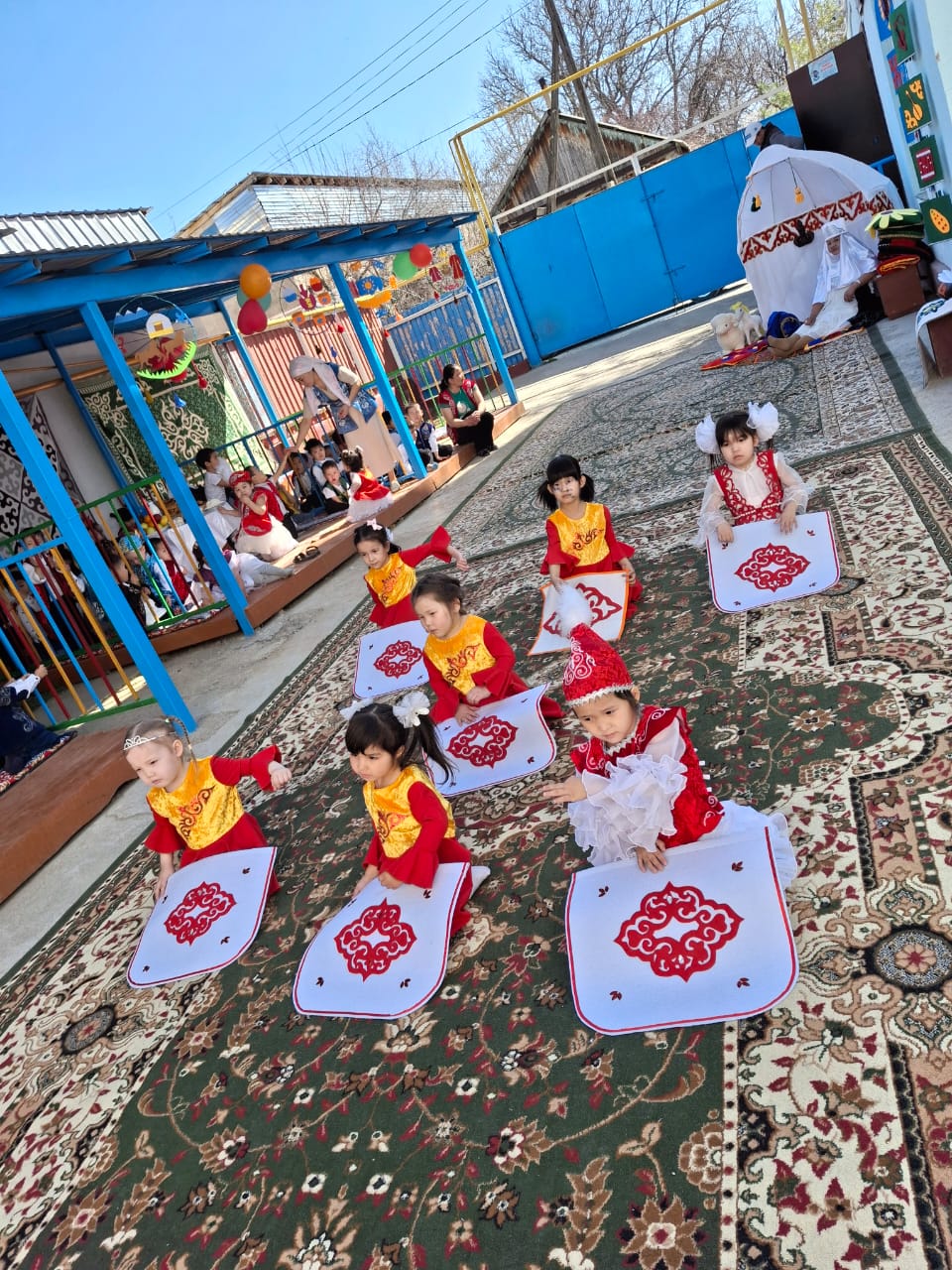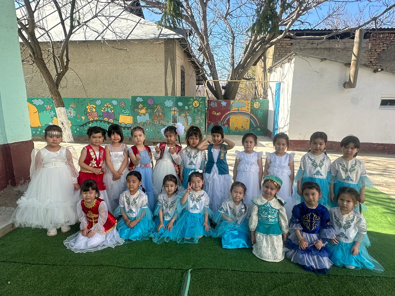 Бөбекжай ауласы түгел темір қорғанмен қоршалған, көгалдандырылған, таза ауада ойнауға жағдай жасалынған.